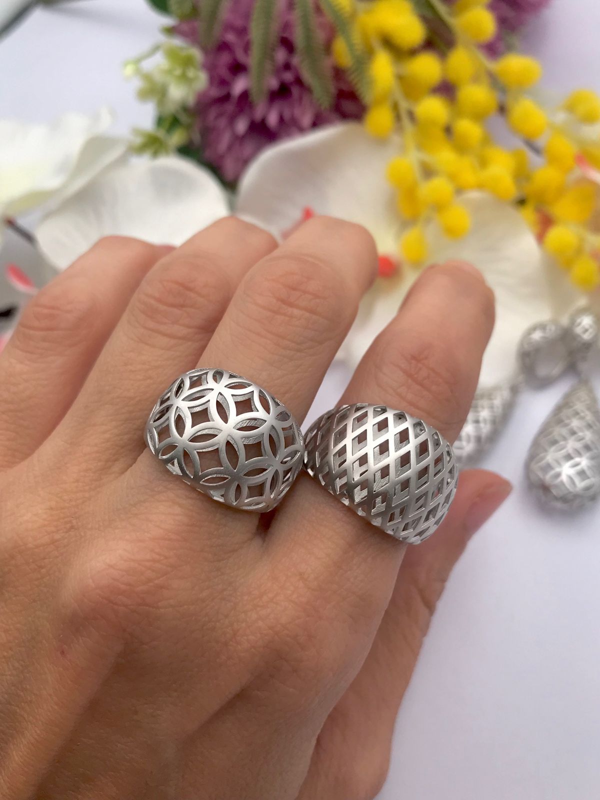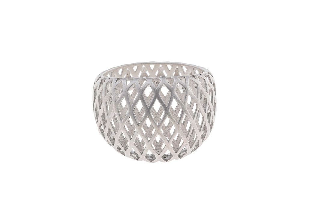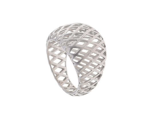 Anillo fabricado en plata de ley con acabado rodiado. Espectacular debido al acabado electroforming para que la pieza adquiera ese volumen sin peso. Acabado mate, solo apto para las mas atrevidas. Una versión calada, donde cada diseño evoca las celosías ornamentales de los palacios persas. Inspirada en esa arquitectura que filtraba la luz y la transformaba en geometría, la línea captura la esencia de una belleza sugerida, casi secreta.