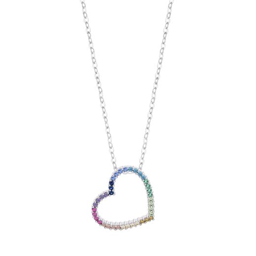 Colgante Lotus en plata de ley con acabado rodiado, con forma de corazón y circonitas multicolor engastadas. Todo un clásico que nunca pasa de moda.