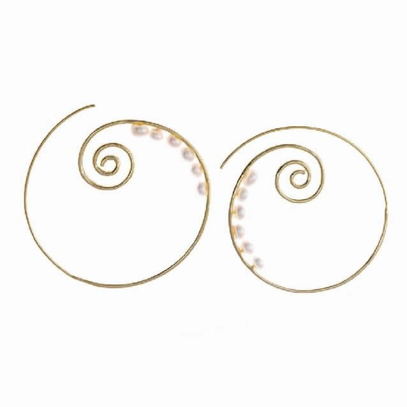 Spektakuläre Spiralohrringe aus vergoldetem Silber mit Süßwasserperlen.