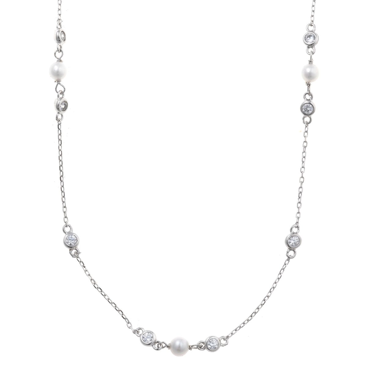 Gargantilla en plata de ley con acabado rodio. Compuesta de pequeñas perlas cultivadas y circonitas blancas. Para que vayas a la última. Ideal para combinar con algún colgante