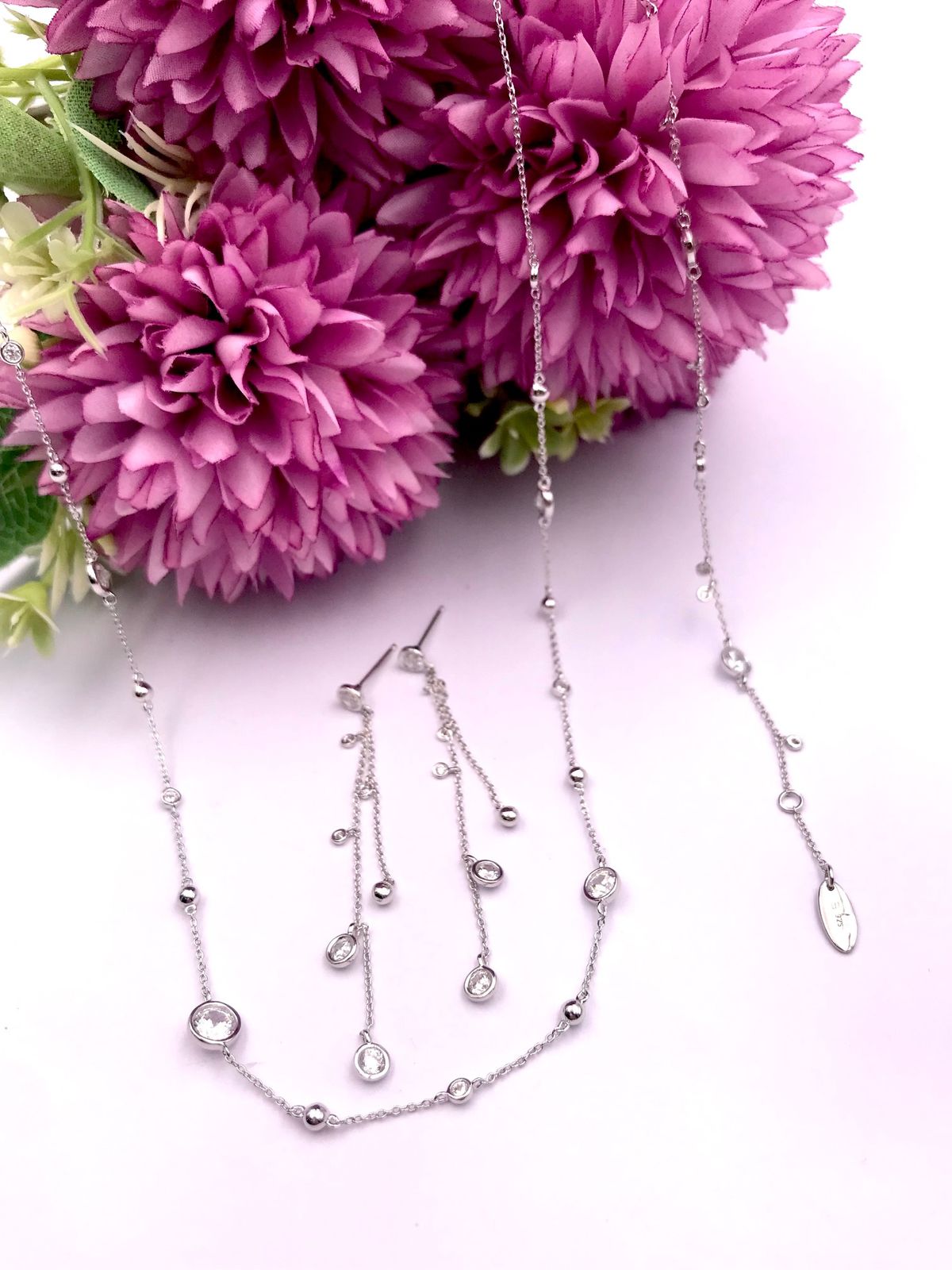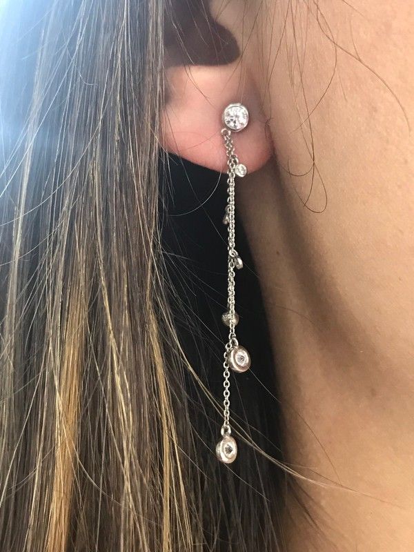 Lange Ohrringe aus rhodiniertem Sterlingsilber und Zirkonia, sehr tragbar im Alltag, auch für besondere Anlässe.