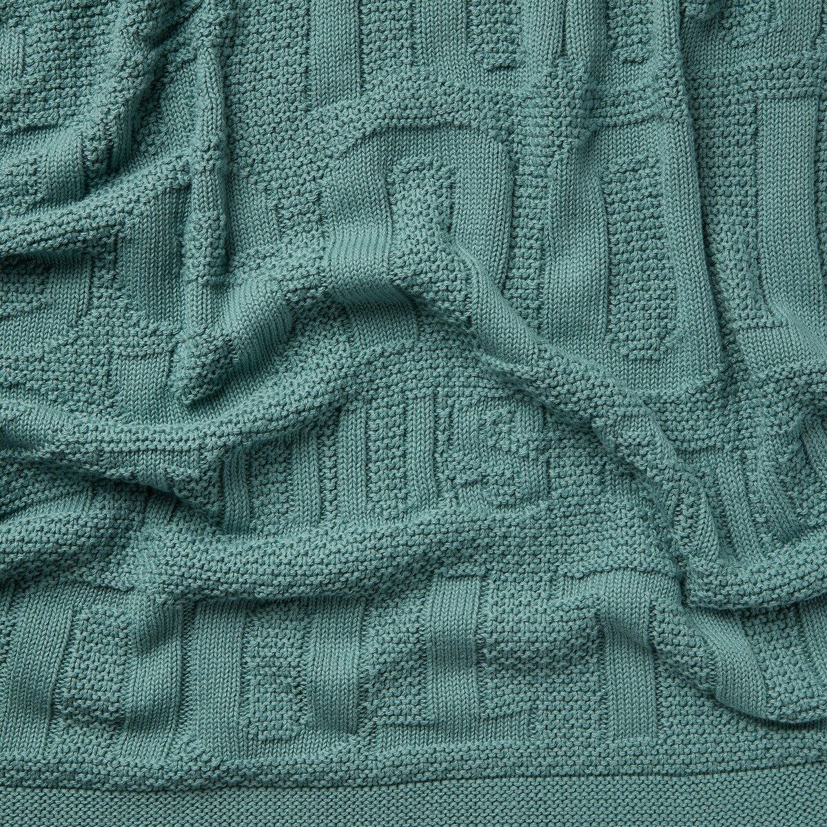 Manta Tous de la colección Nilo en color verde, fabricada con hilatura de algodón 100% orgánico y fabricada de forma artesanal. De tacto suave y agradable con estrellitas y ositos en un sutil relieve. Será el complemento ideal e inseparable para mantener calentito a tu bebé en cualquier lugar y momento.