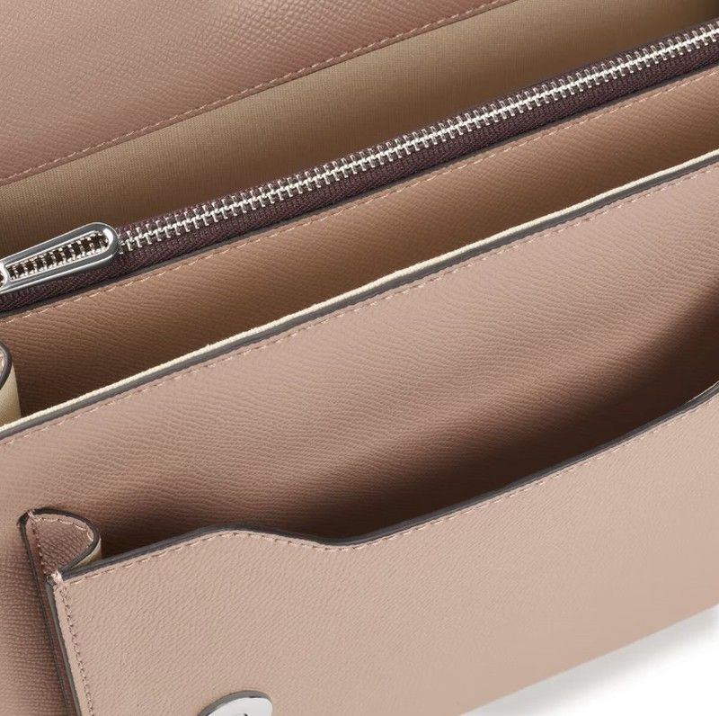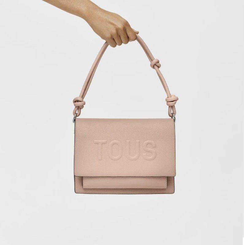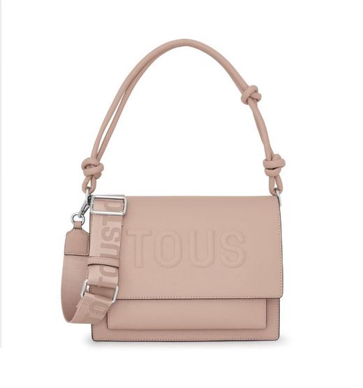 Mittelgroße Tous-Umhängetasche aus der Audree La Rue New-Kollektion aus taupefarbenem Kunstleder. Verschlossen mit zwei Magnetknöpfen, im Inneren befinden sich drei offene Fächer und eines mit Reißverschluss. Es verfügt über zwei Griffe, einen abnehmbaren Schultergurt und einen weiteren festen Schultergurt. Dieses Modell ist zu einem festen Bestandteil Ihrer Garderobe geworden und repräsentiert Mode und Eleganz in einem einzigen Accessoire.