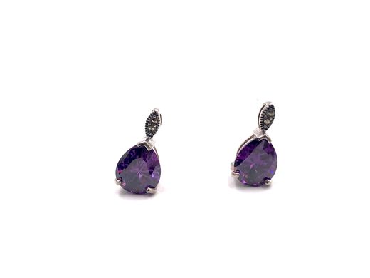Pendientes fabricados en plata de ley con forma conocida como tu y yo. Un detalle de marquesitas acompañado de una circonita de color lila, siendo la protagonista de la pieza.