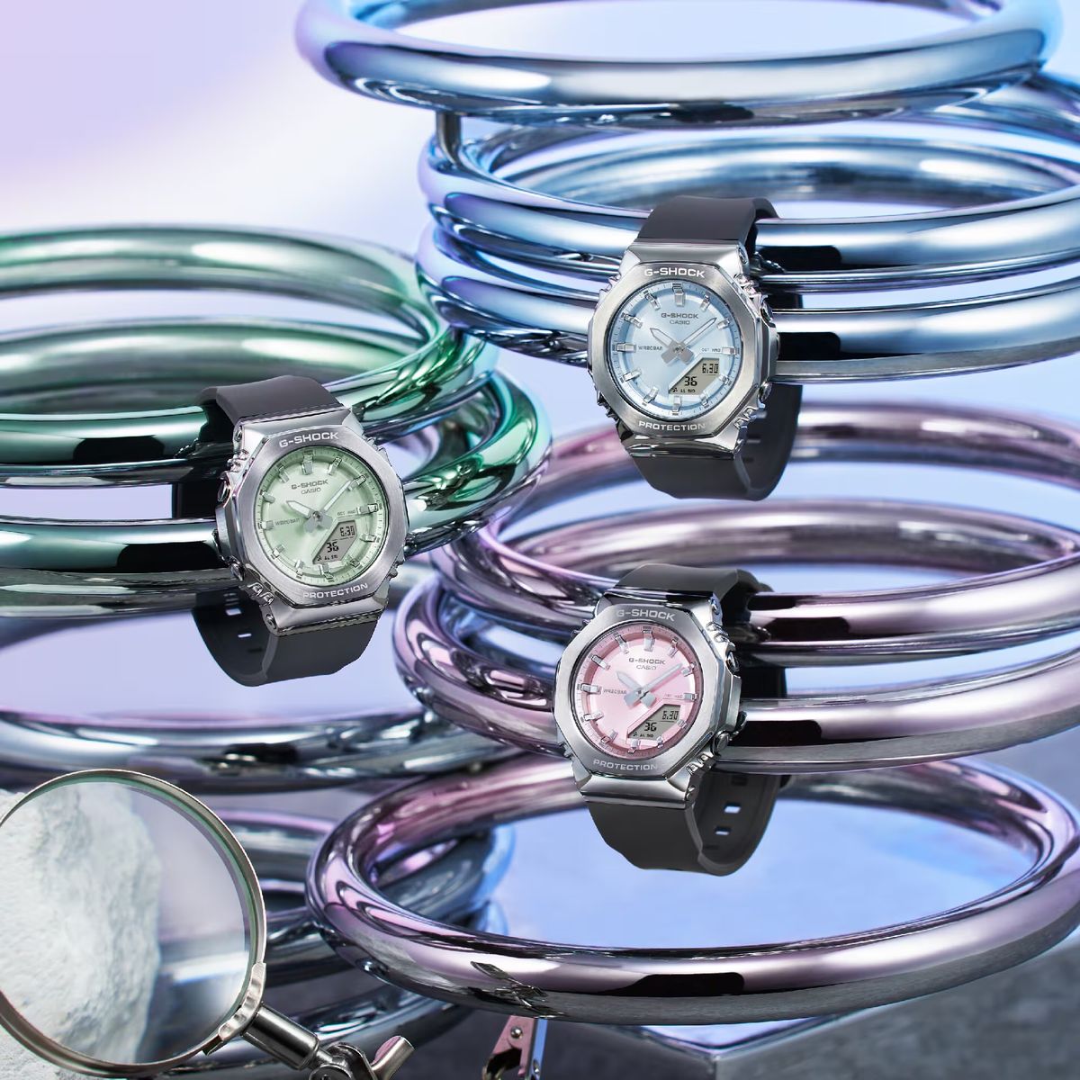 Reloj Casio G-Shock GM-S2110 para mujer con caja de acero y esfera azul