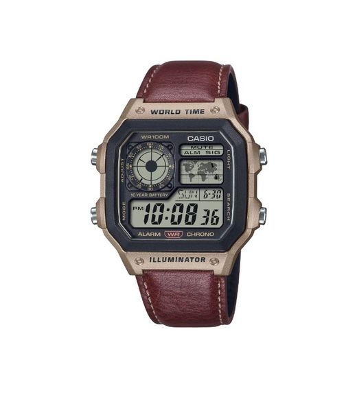Reloj digital Casio con horario mundial AE-1200 con piel marrón
