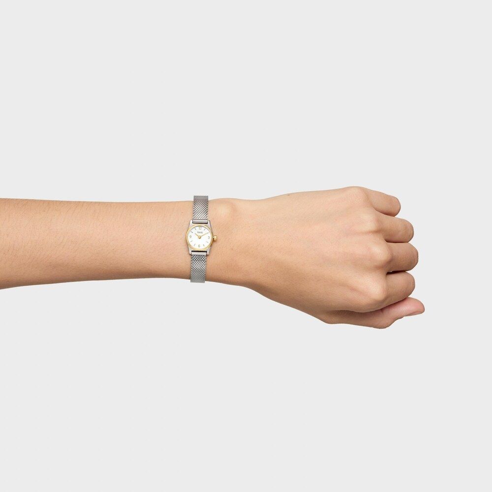 Reloj Tous de la colección Epic, fabricado en acero inoxidable combinado sutilmente en bisel, signos y agujas en Ip dorado. Brazalete de esterilla también conocida como malla milanesa. Un reloj que une la tradición joyera con las tendencias actuales, una pequeña joya que refleja personalidad y estilo. Elegante y moderna, la colección convierte cada instante en un momento icónico.