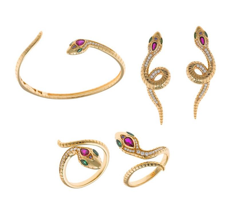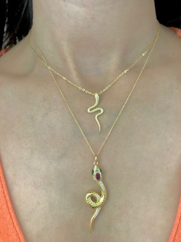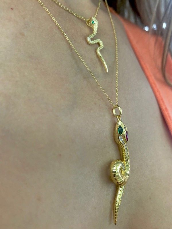 Schlangenförmiger Anhänger aus vergoldetem Sterlingsilber. Mit diesem detailreichen Anhänger ziehen Sie garantiert alle Blicke auf sich. Die Zirkonia in verschiedenen Farben verleihen diesem Schmuckstück einen realistischen Look.