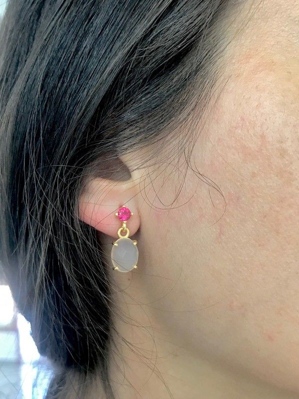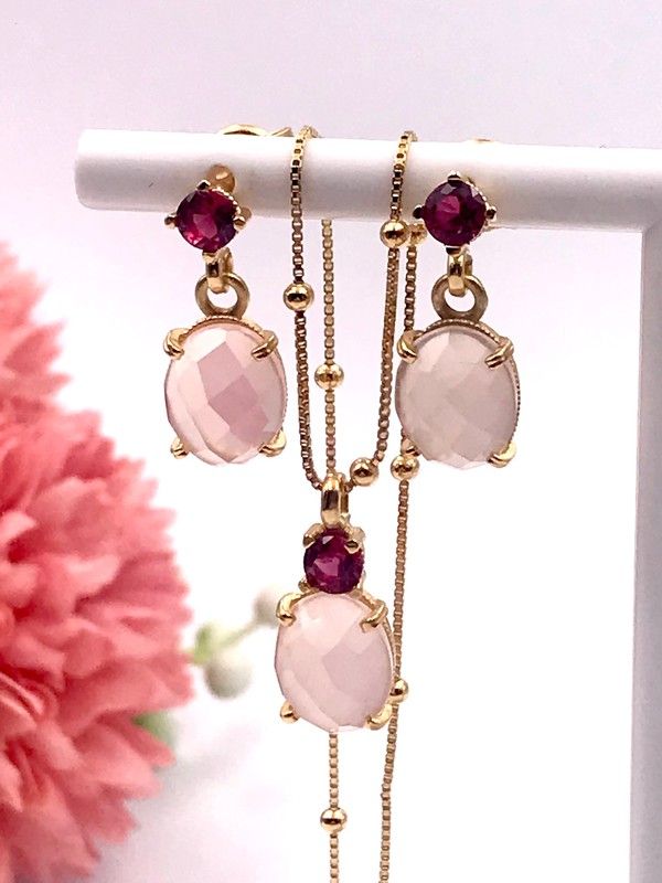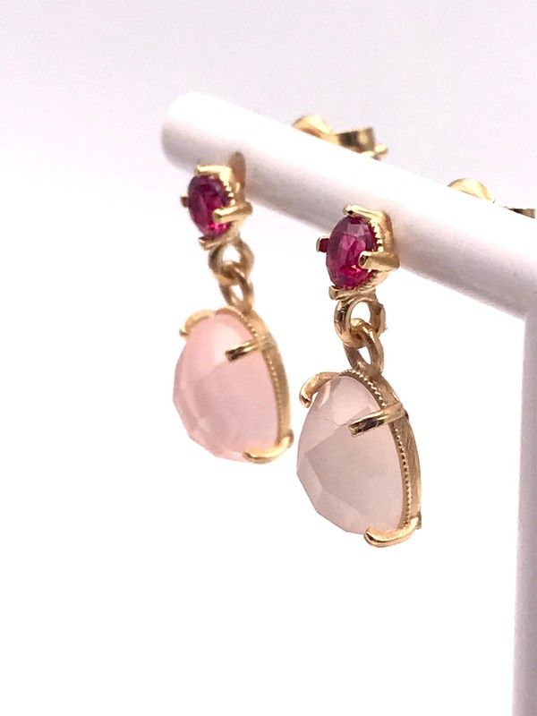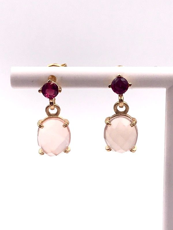 Lange Ohrringe aus vergoldetem Sterlingsilber mit Rosenquarz und Nanogemmen. Ein sehr schönes und feminines Paar Ohrringe. Entworfen und hergestellt in Spanien. Änderungen sind möglich (bitte anfragen).