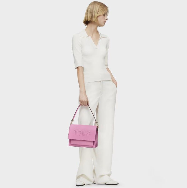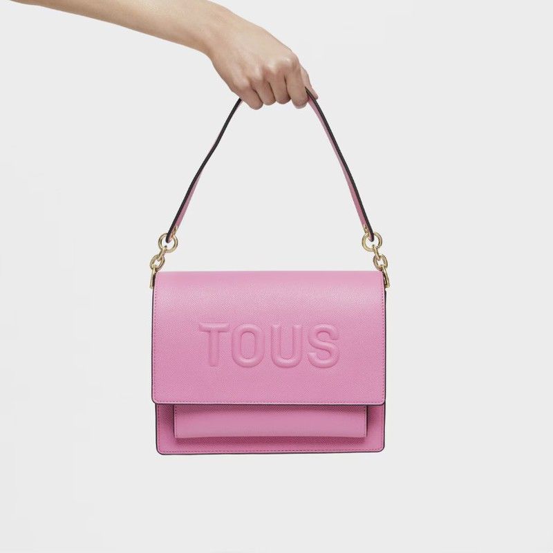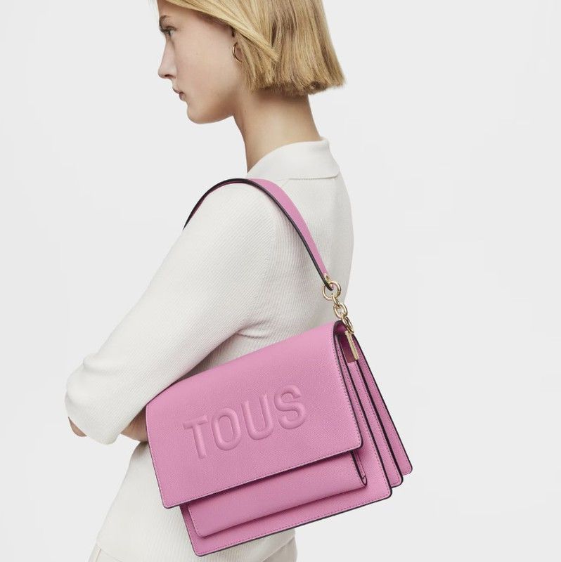 Mittelgroße Tous Umhängetasche aus der Audree Brenda Kollektion aus rosa Polyurethan. Sie wird mit zwei Magnetknöpfen geschlossen und verfügt innen über drei offene Fächer und eines mit Reißverschluss. Sie hat zwei Tragegriffe: einen abnehmbaren Schultergurt und einen festen, figurbetonteren. Dieses Modell ist zu einem unverzichtbaren Accessoire geworden und vereint Mode und Eleganz in einem einzigen Accessoire.