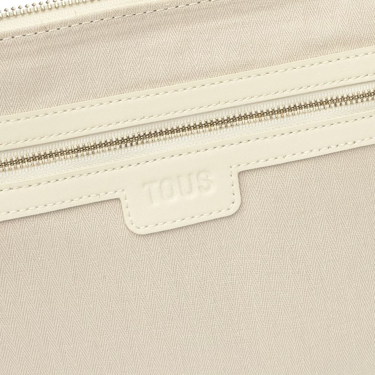 Die Tous Chain Fold Crossbody-Tasche ist aus LWG-zertifiziertem Rindsleder in Beige gefertigt und mit goldfarbenen Beschlägen versehen. Sie verfügt über einen Reißverschluss und ein Innenfach mit Reißverschluss. Der verspielte Schulterriemen lässt sich durch Abnehmen der Bärenanhänger verstellen. Eleganz und Luxus vereint in einer Tasche.