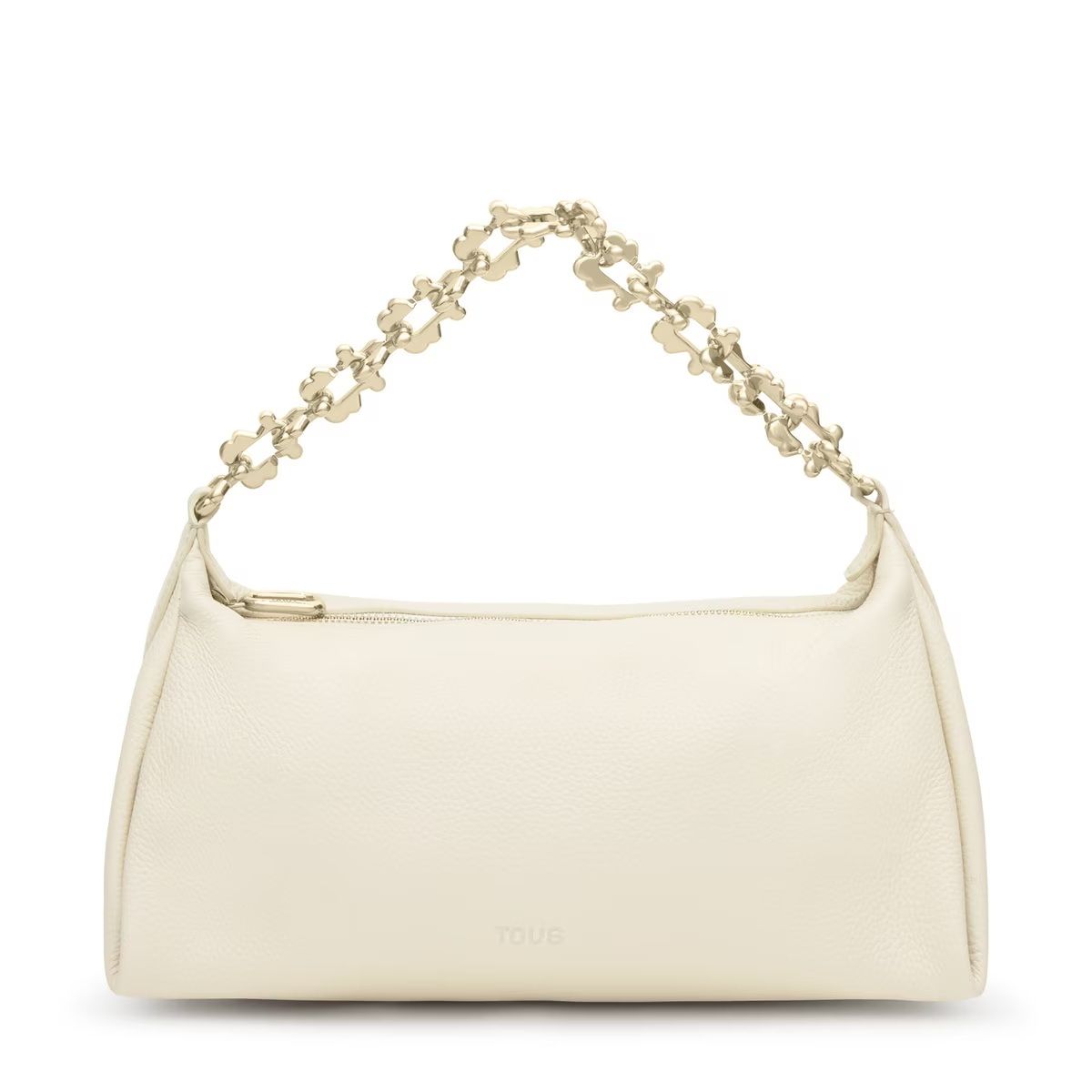 Tous Chain Fold Schultertasche aus beigefarbenem Leder
