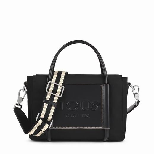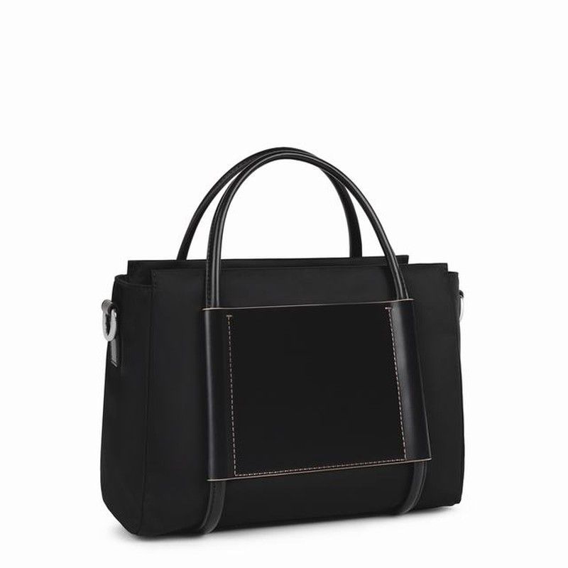 Mittelgroße City-Tasche aus der Empire Soft-Kollektion aus schwarzem recyceltem Nylon. Reißverschluss. Griffe und langer verstellbarer und abnehmbarer Riemen. Tasche hat 2 flache Außentaschen.