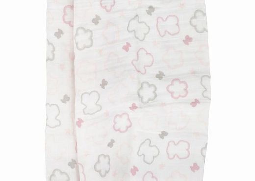 Tous Baby-Musselin, hergestellt aus einem dünnen und atmungsaktiven antiallergenen Stoff mit einem zarten Aufdruck in Rosa- und Grautönen von Bären und kleinen Blumen. Für diesen fantastischen Musselin gibt es tausend Verwendungsmöglichkeiten, vom Schutz vor Sonnenstrahlen bis hin zum Schutz vor unerwartet kühlen Brisen. Sehr nützlich und empfehlenswert.