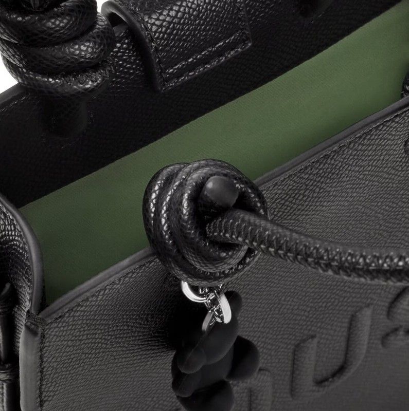 Tous Mini Bag aus der Pop La Rue New-Kollektion, aus schwarzem Kunstleder. Der Innenraum wird mit einem Magnetknopf verschlossen und verfügt über eine flache Innentasche. Es handelt sich um eine Tasche mit doppelter Funktionalität, da sie als Handtasche mit festen Henkeln oder als Umhängetasche verwendet werden kann.