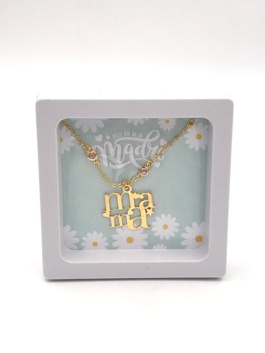 Vergoldeter Silberanhänger mit dem Wort Mama, Kette mit rosa Kristallen und mit einer Verlängerungskette.