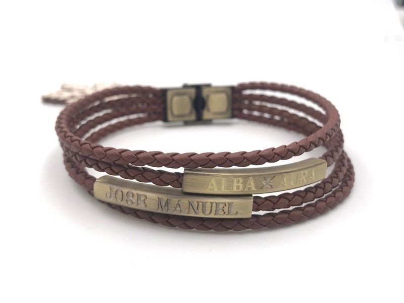 Viceroy-Armband aus Edelstahl mit mehreren Streifen aus braunem geflochtenem Leder. Es hat zwei Platten aus Edelstahl Ip-Bronze, die personalisiert werden können. Wenn Sie Ihre Sendung personalisieren möchten, schreiben Sie Ihre Bemerkungen auf oder kontaktieren Sie sie per WhatsApp, ohne Kosten oder Verzögerungen bei Ihrer Sendung.